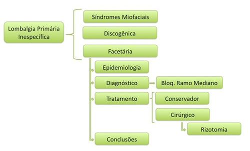 O Objetivo deste capítulo é realizar uma revisão da anatomia, biomecânica e função das articulações facetárias lombares, além de balizar de maneira clara o diagnóstico e tratamento da artropatia facetaria lombar.