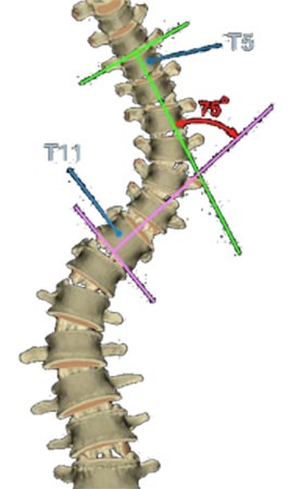 O método clássico de aferição da curva escoliótica é o método de Cobb. Consiste em traçar uma linha no platô superior da vértebra terminal superior e uma linha no platô inferior da vértebra vertebral inferior. Traça-se uma perpendicular a cada uma das duas anteriores e mede-se o ângulo entre elas. As vértebras terminais superior e inferior podem ser reconhecidas pela abertura do disco adjacente à convexidade da curva, sendo diferente dos discos das vértebras pertencentes à curva cuja abertura se dá para a concavidade da curva. Carman et al. e Morrissy et al. acharam uma variedade interobservador na mensuração do ângulo de Cobb de 5 a 7. Isso deve ser levado em conta para avaliação de uma verdadeira progressão da curva.