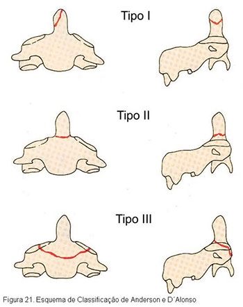 As fraturas do côndilo occipital classificam-se, conforme proposta de Anderson e Montesano em publicação do ano de 1988, segundo a anatomia regional, a biomecânica das estruturas envolvidas e suas morfologias (fig.5).