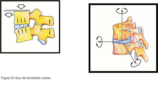 A coluna tem as seguintes funções:proteção da medula espinhal, pilar de sustentação do esqueleto axial e mobilidade em três planos. (figura28)