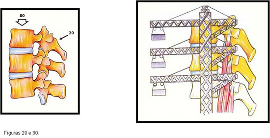 A estrutura anterior suporta a forças de compressão e as estruturas posteriores a forças de distração. Portanto, a coluna anterior funciona como uma estrutura distratora e a posterior (contração muscular) como compressora (Figura 31).