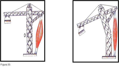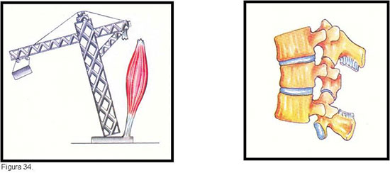 Podemos comparar a coluna com a estrutura de um guindaste. Assim como o guindaste a coluna apresenta um pilar de sustentação (os corpos), a carga anterior ao pilar e um tirante posterior (ligamentos e músculos paravertebrais) (Figura 30).