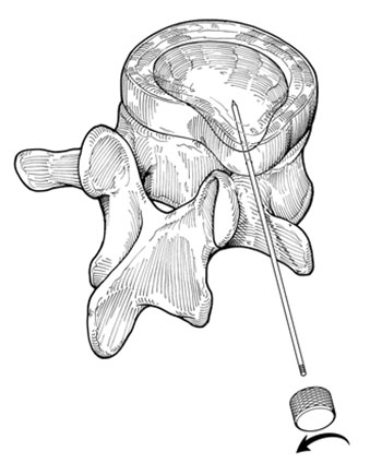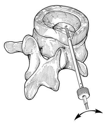 Consiste na remoção de hérnia discal lombar com auxílo de uma cânula de 3 mm de diâmetro onde é introduzido um catéter que em sua extremidade emite jatos d'agua a 900 km/hora, e simultaneamente aspira o conteúdo discal, assim diminuindo o seu tamanho.